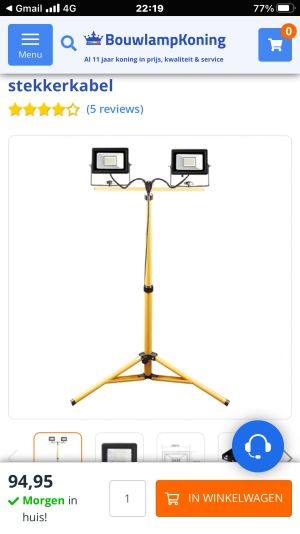 Eerst gebeld voor info. Was direct verbonden en prima advies! Betreft een sterke dubbele bouwlamp op statief. Zeer goede prijs en de volgende dag al in huis! Super!